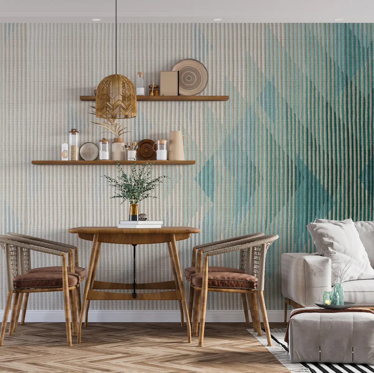 Du kan imidlertid velge å legge et lakkbelegg på tapetet. Da blir tapetet ekstra vannbestandig, tåler vannsprut og smuss og blir lettere å rengjøre.