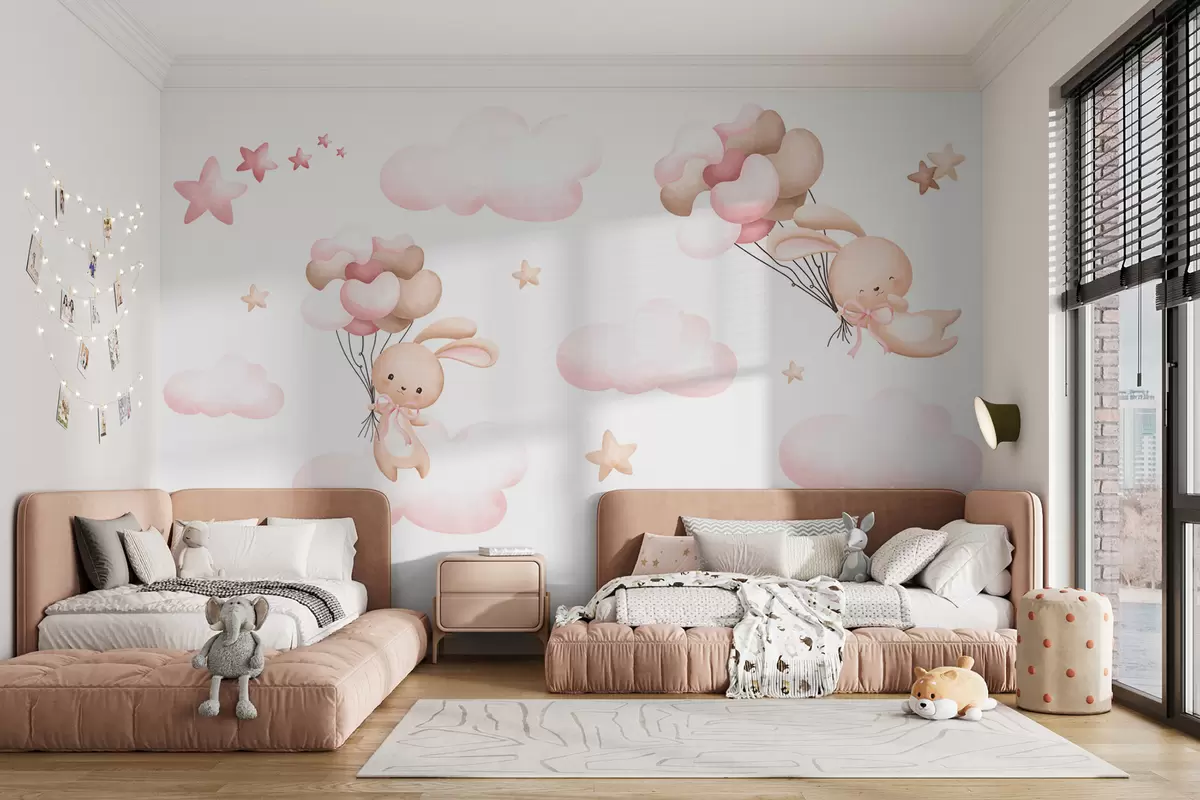 Fototapeter Søt kanin og ballonger Nr. u95399
