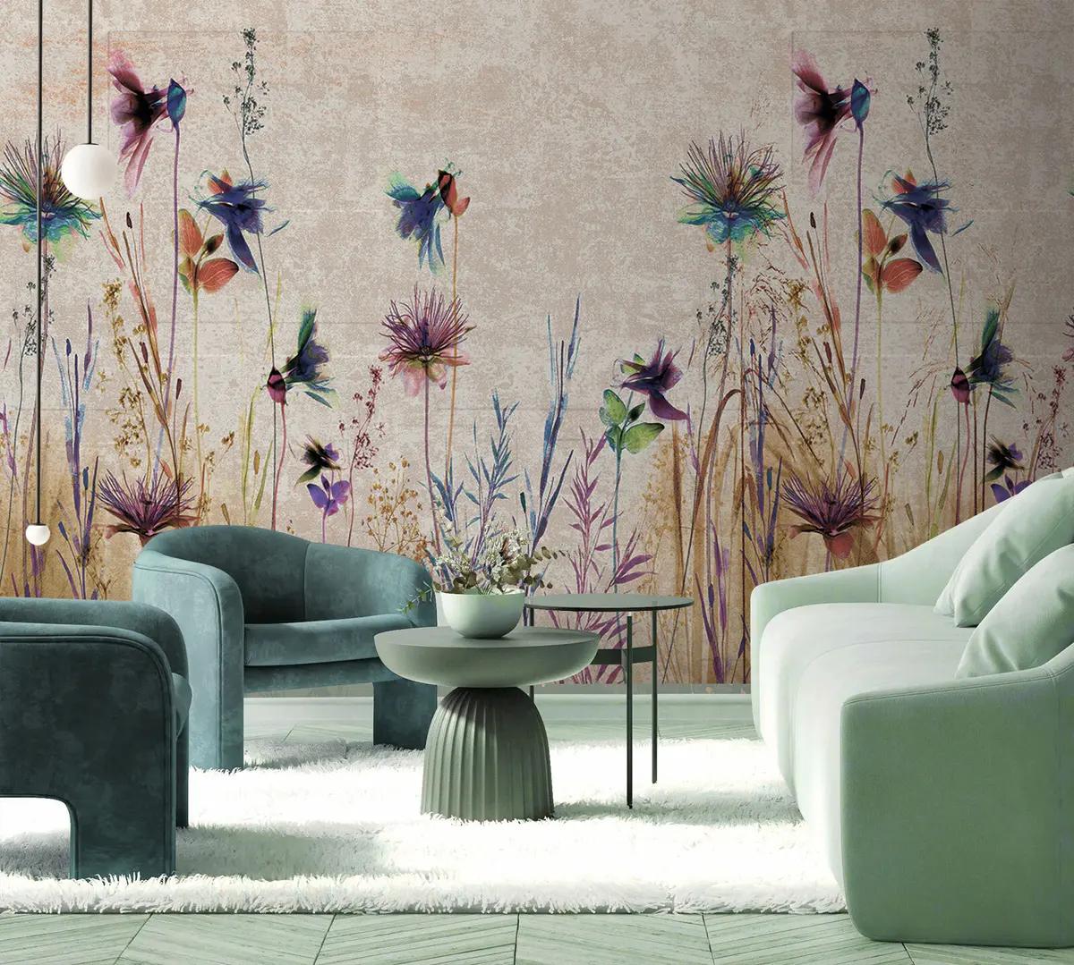 Fototapeter Uvanlige høye blomster på beige bakgrunn Nr. u93672