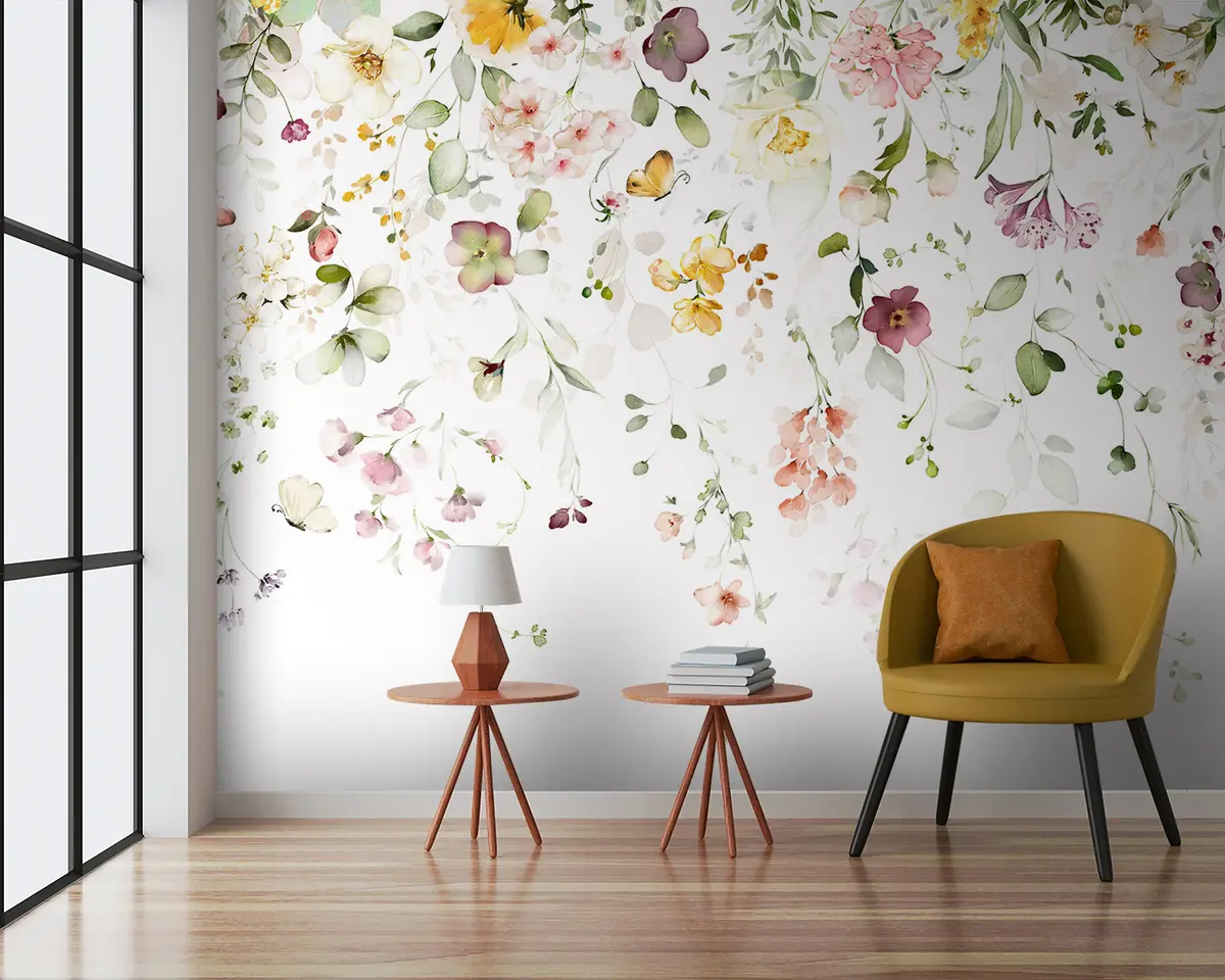 Fototapeter Akvarellkomposisjoner med hageblomster Nr. u95507