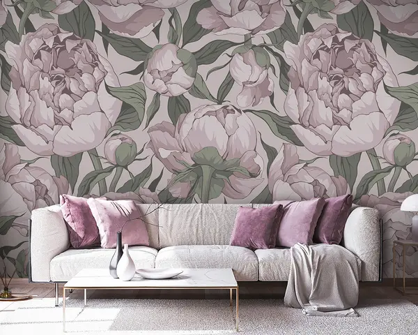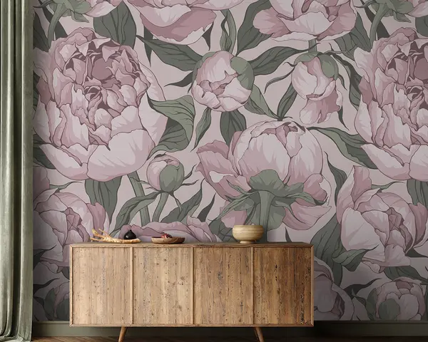 Fototapeter Blomstrende pioner i pastellfarger Nr. u95849