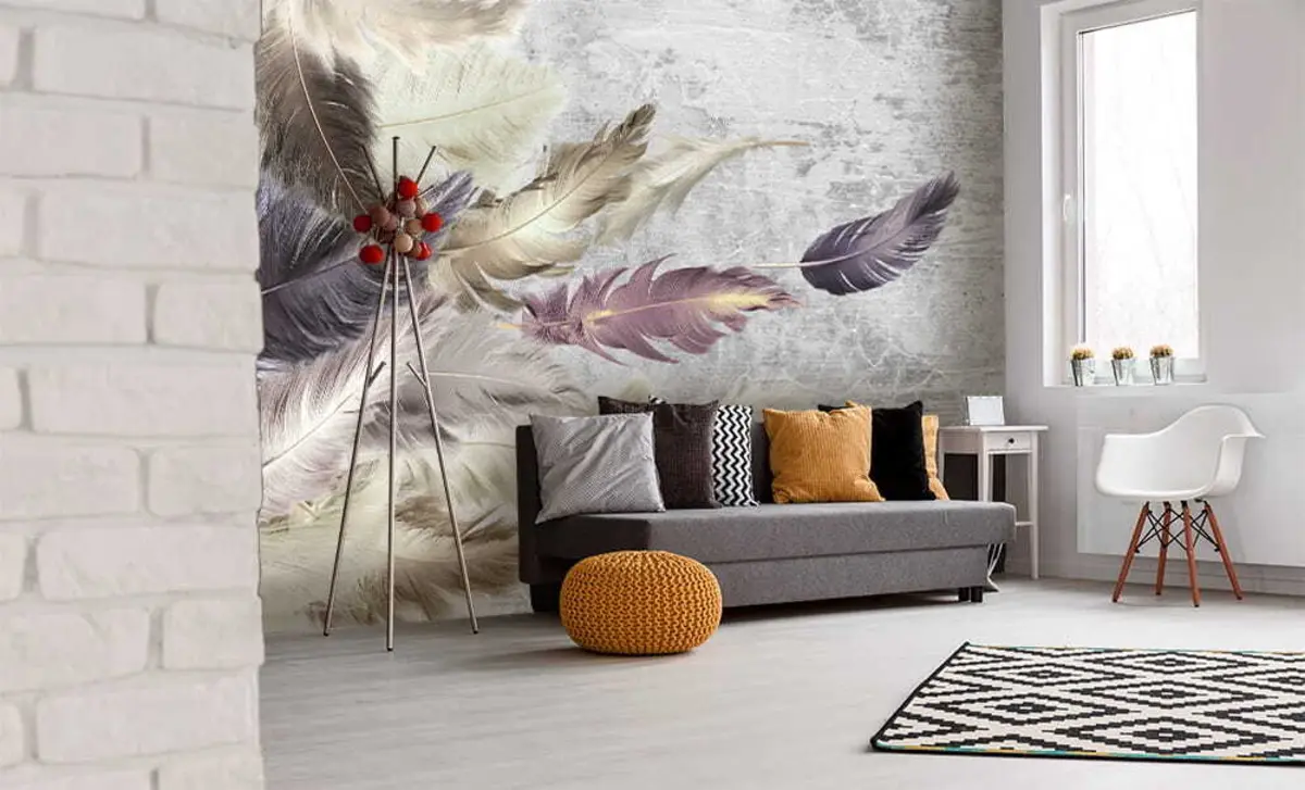 Fototapeter Fargede fjær på en betongvegg Nr. u21165