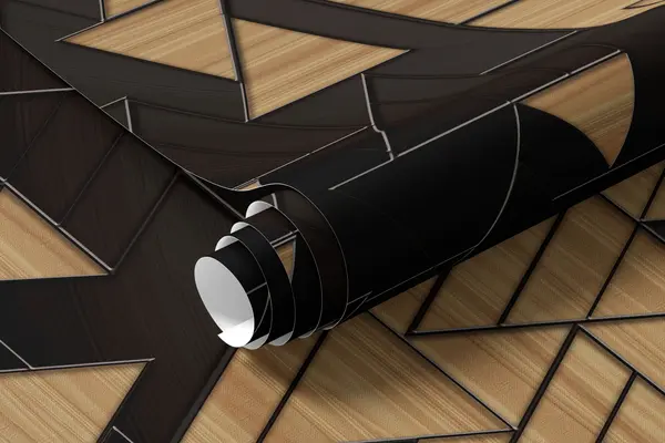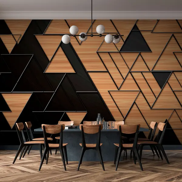 Fototapeter 3D-trekanter i mørkegrått og trekorn med pregede linjer Nr. u75167