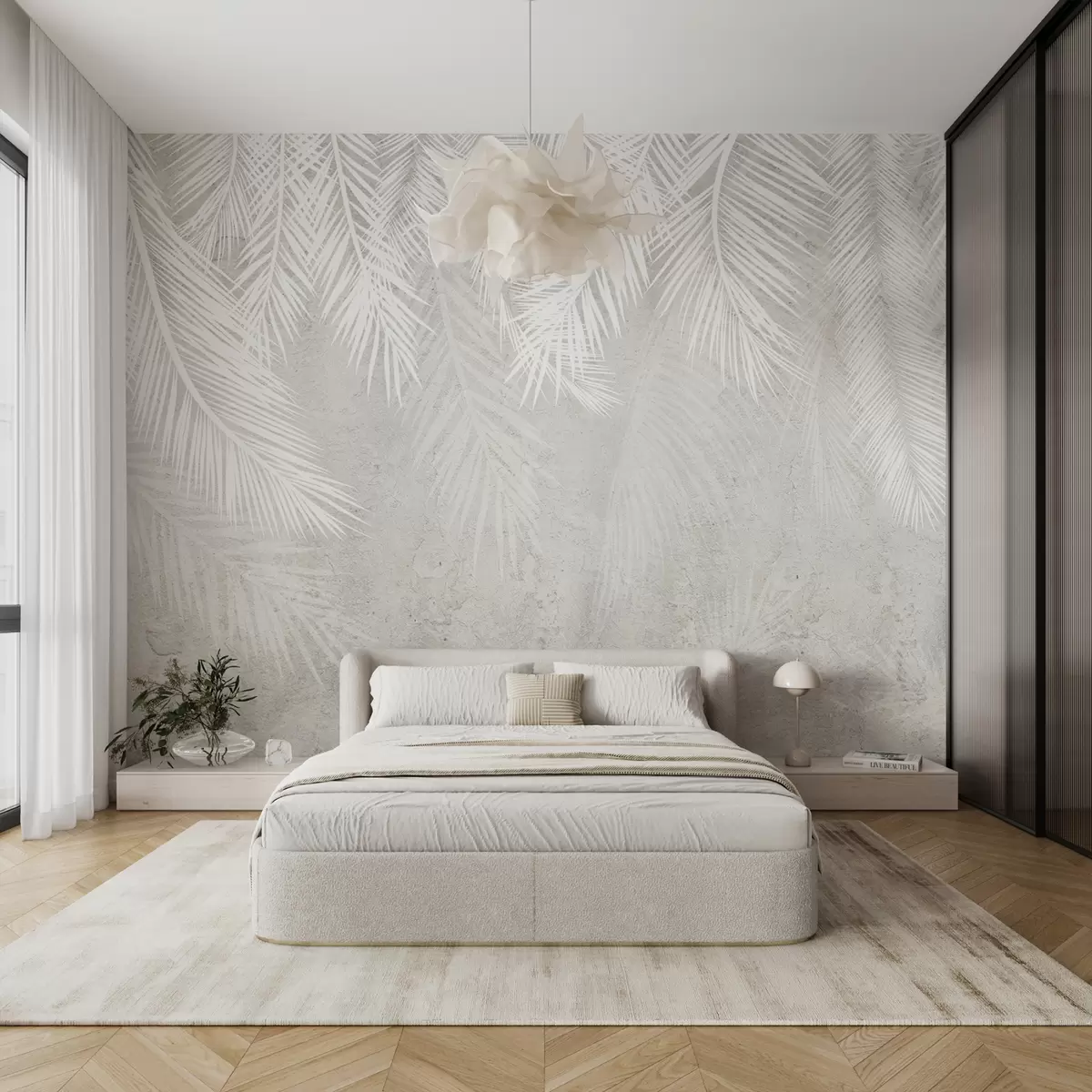 Fototapeter Hvite, skjøre palmeblader med grunge-struktur Nr. u94286