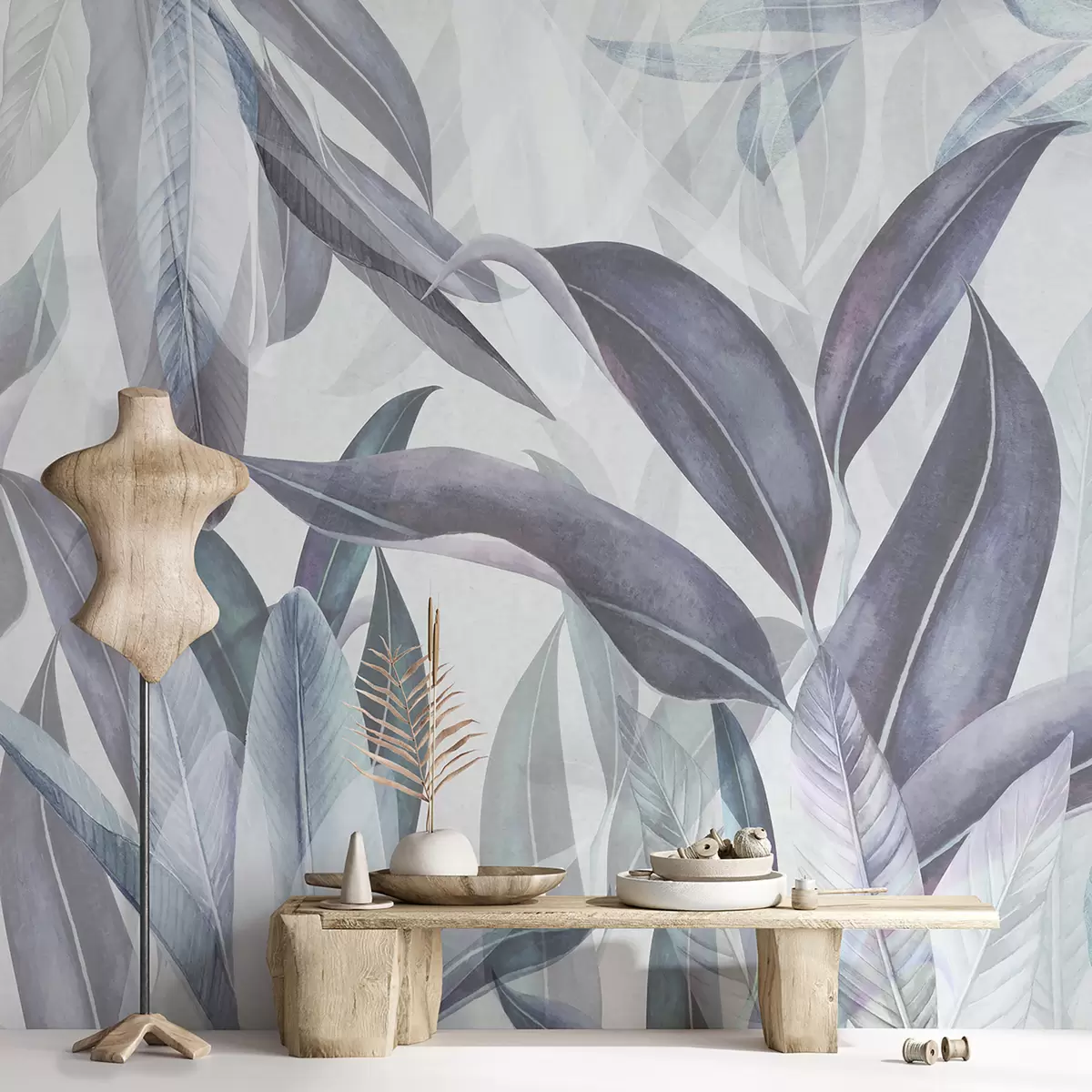 Fototapeter Grønne og rosa palmeblader i blå farger Nr. u94302v1