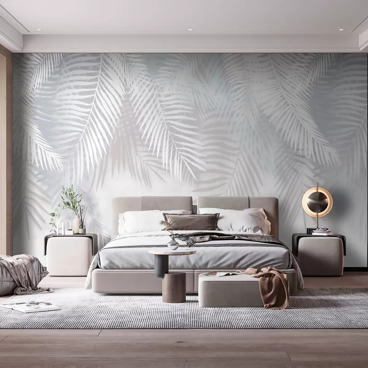 Fototapeter Hvite palmeblader på grunge-tekstur Nr. u94457