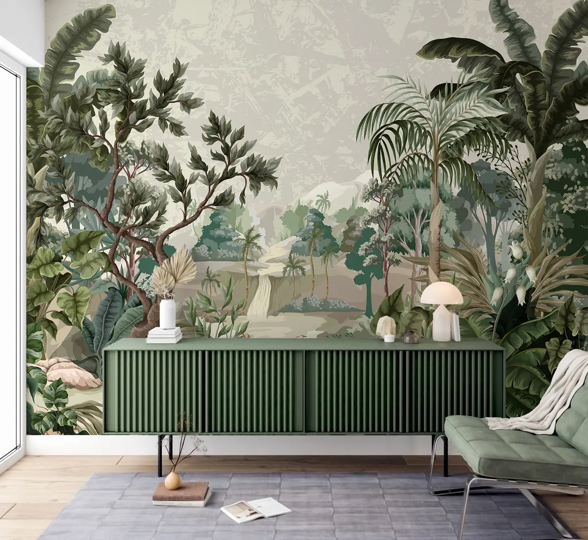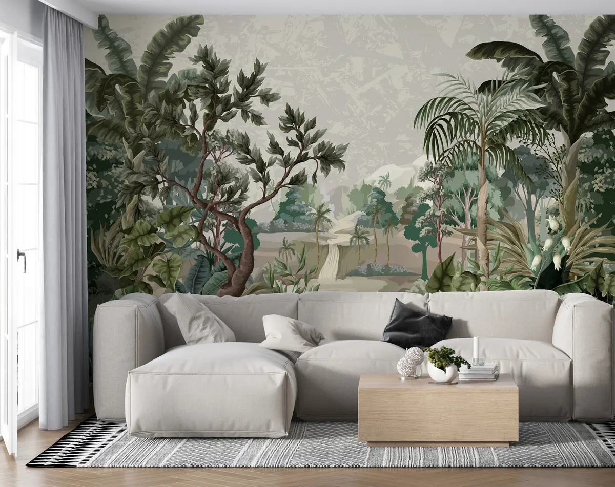 Fototapeter Jungel med elv og palmer Nr. u95915