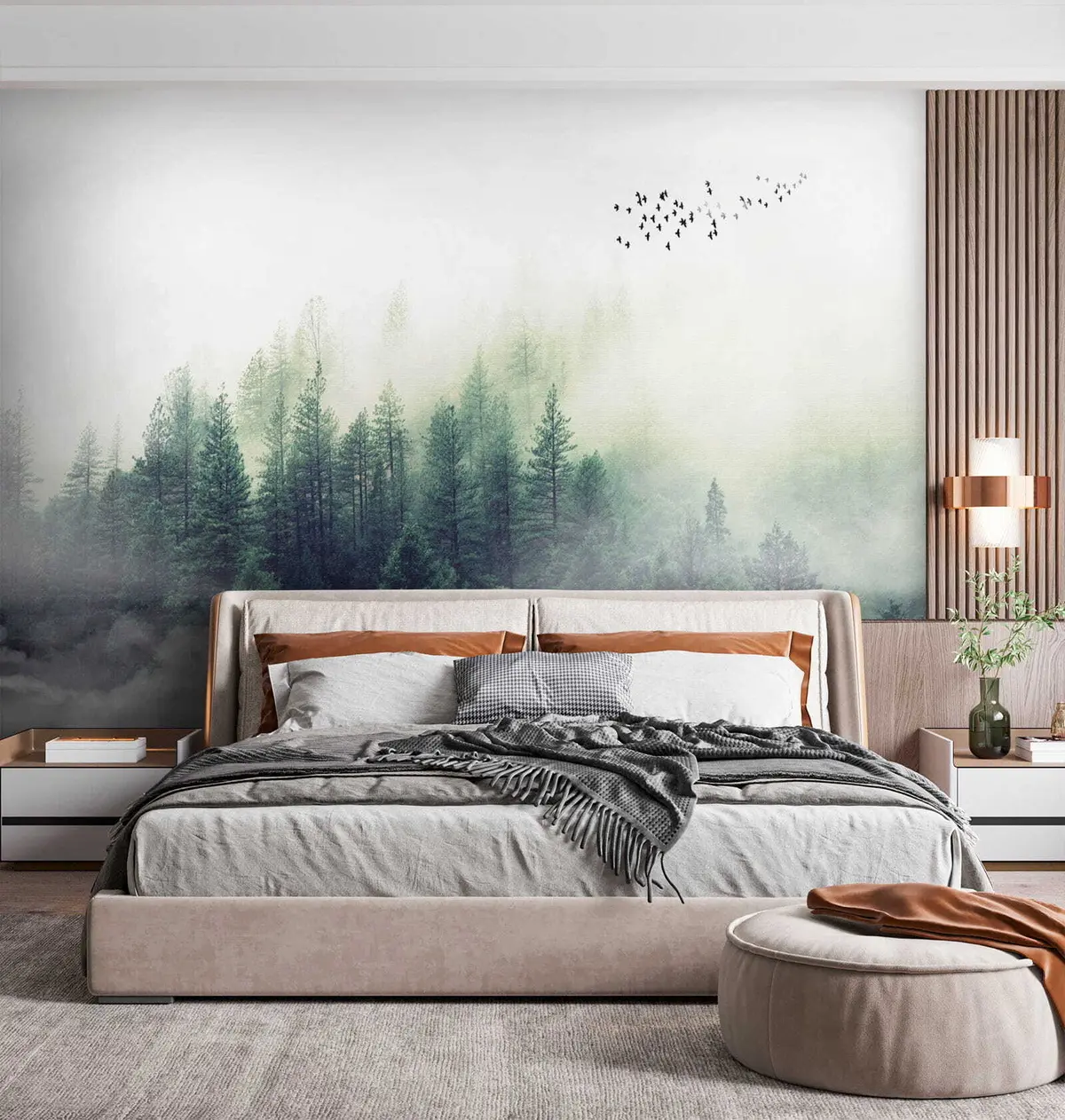 Fototapeter Skog og fugler i tåke Nr. u10882