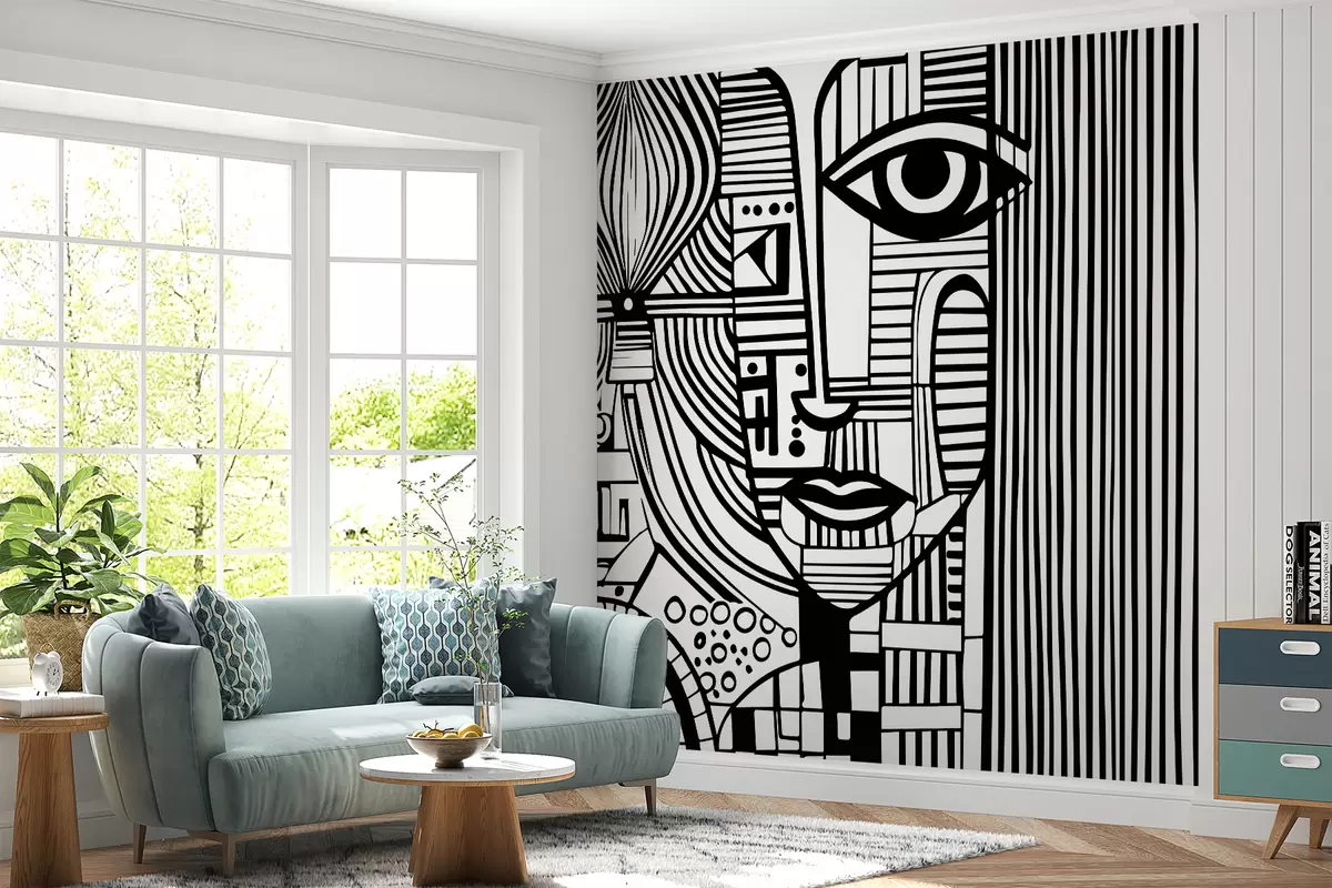 fototapeter Abstrakt svart-hvitt ansikt u98714