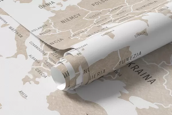 Fototapeter Barnekart i akvarellstil med dyr og varmluftsballonger. Polsk språk. Beige farge. Nr. c00001plv2