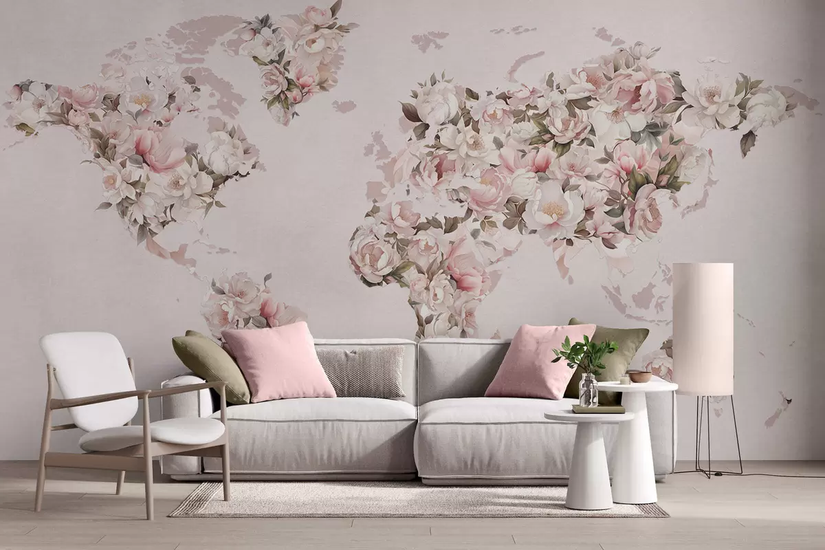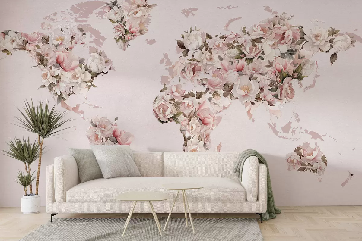Fototapeter Et rosa verdenskart laget av store hvite og rosa pioner Nr. c00005
