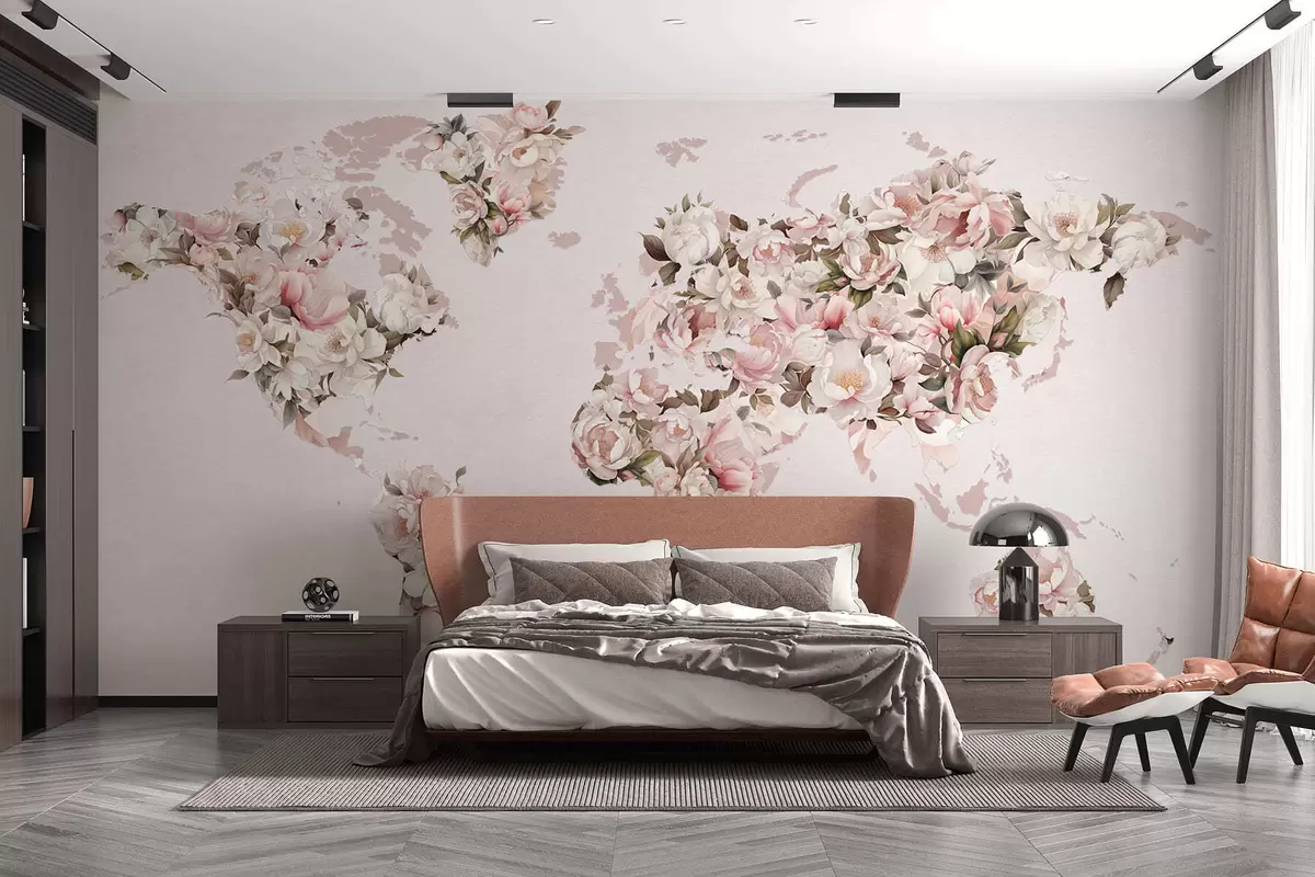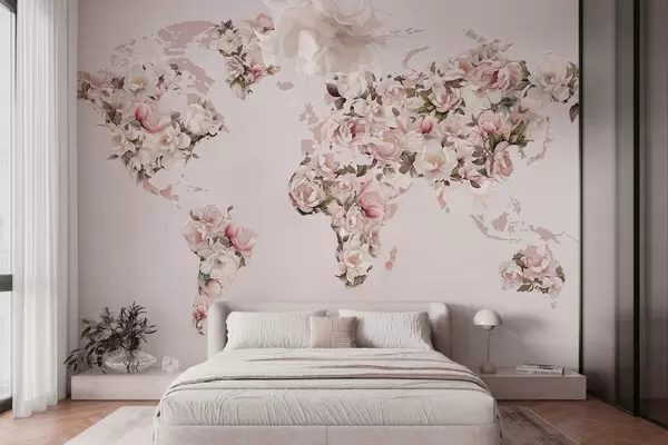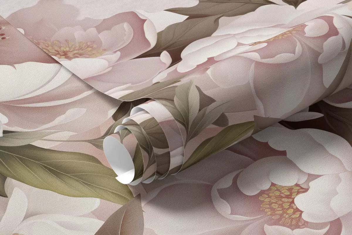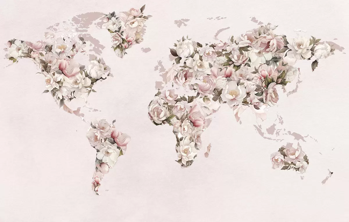Fototapeter Et rosa verdenskart laget av store hvite og rosa pioner Nr. c00005