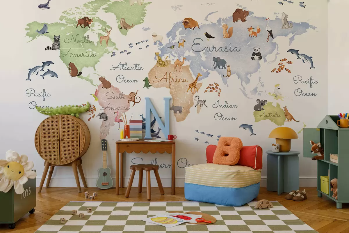 Fototapeter Et fargekart i akvarellstil med dyr. Betegnelser på engelsk Nr. c00012en