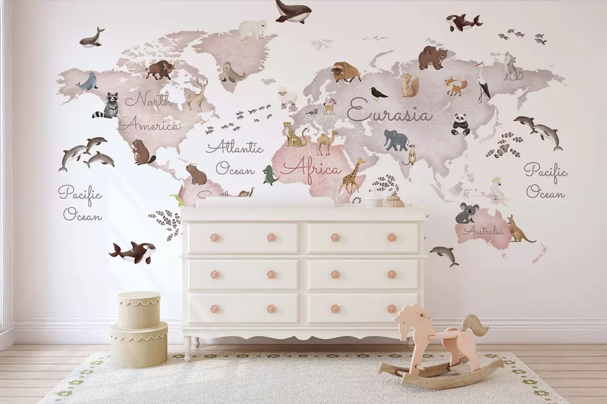 Fototapeter Et beige kart i akvarellstil med dyr. Betegnelser på engelsk Nr. c00012env3