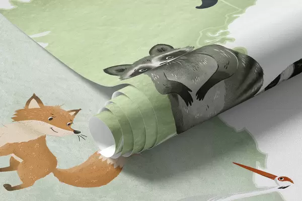 Fototapeter Et grønt kart i akvarellstil med dyr. Tekst på fransk Nr. c00012frv2