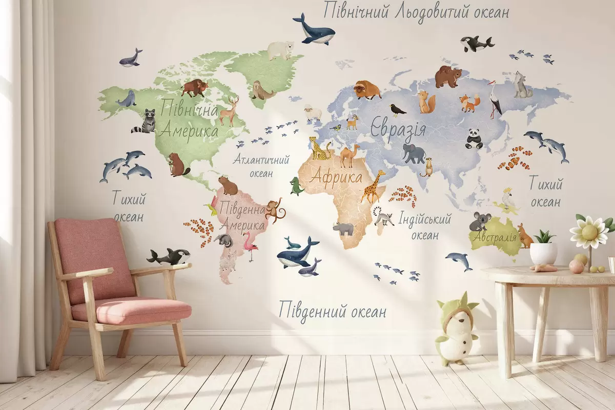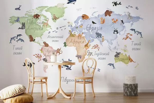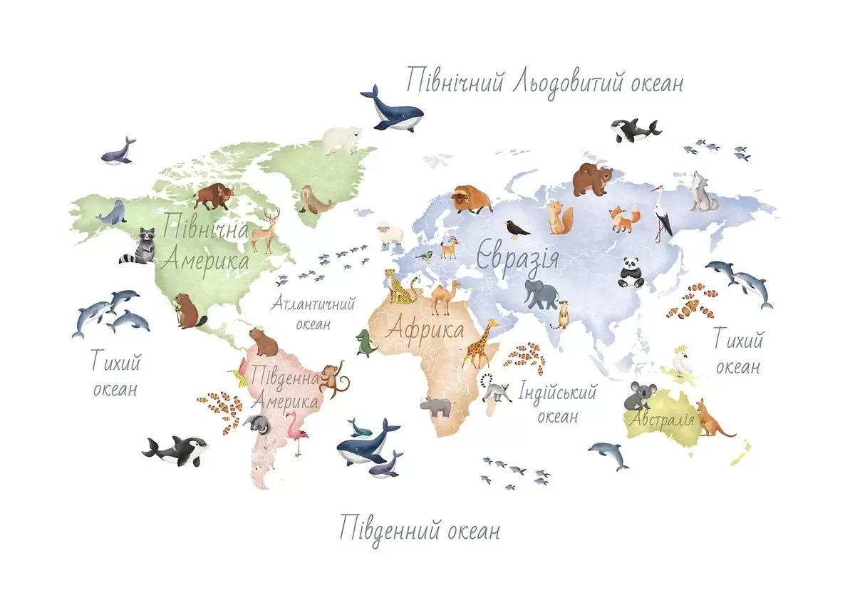 Fototapeter Et fargekart i akvarellstil med dyr. Betegnelser på ukrainsk Nr. c00012uk