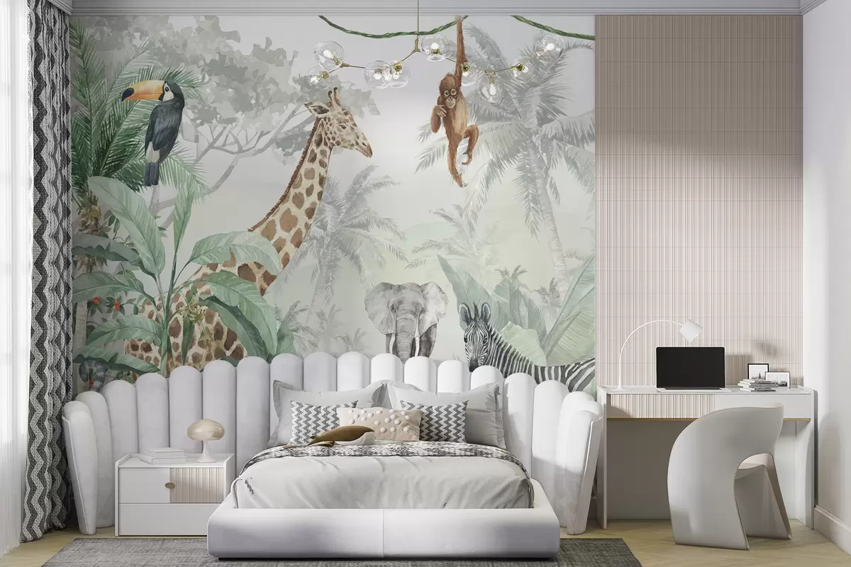 Fototapeter Jungelpanorama med dyr Nr. u74709d1