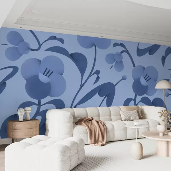 Fototapeter Botanisk trykk med dekorative blomster i blått Nr. u99196v8