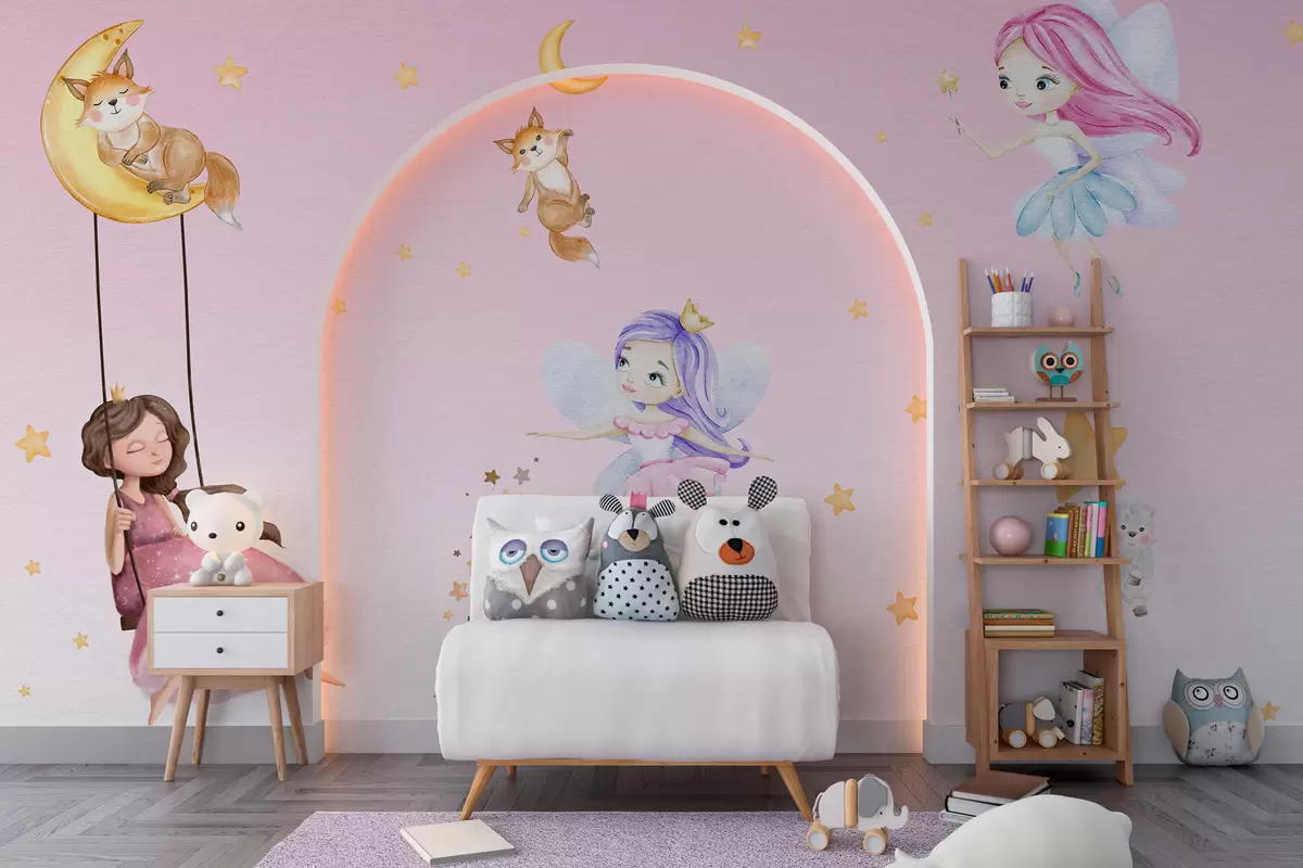 Fototapeter Feer og søte dyr på rosa bakgrunn Nr. w00621v1