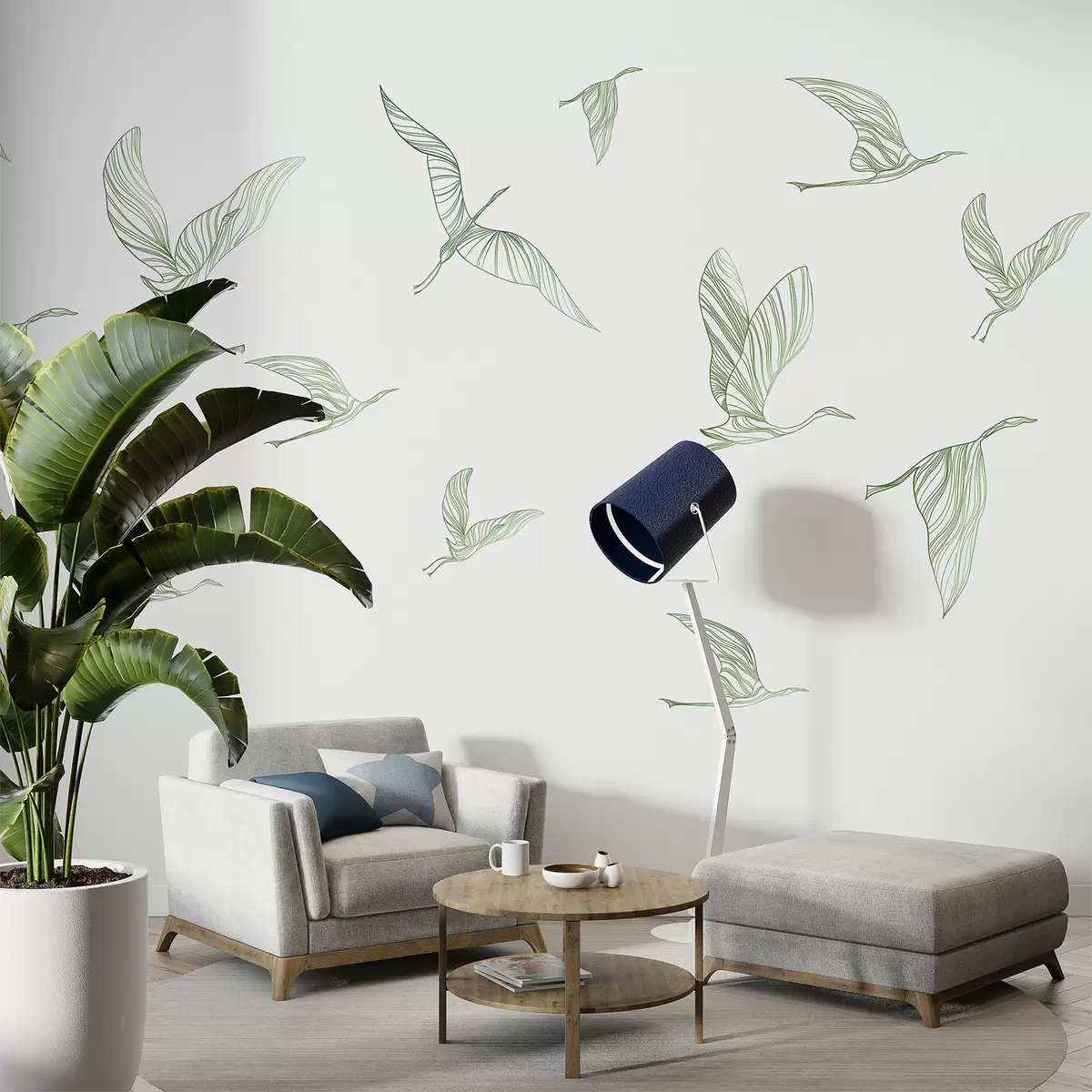 Fototapeter Flying birds line art, minimalisme, natur, grønne farger Nr. w00758v2