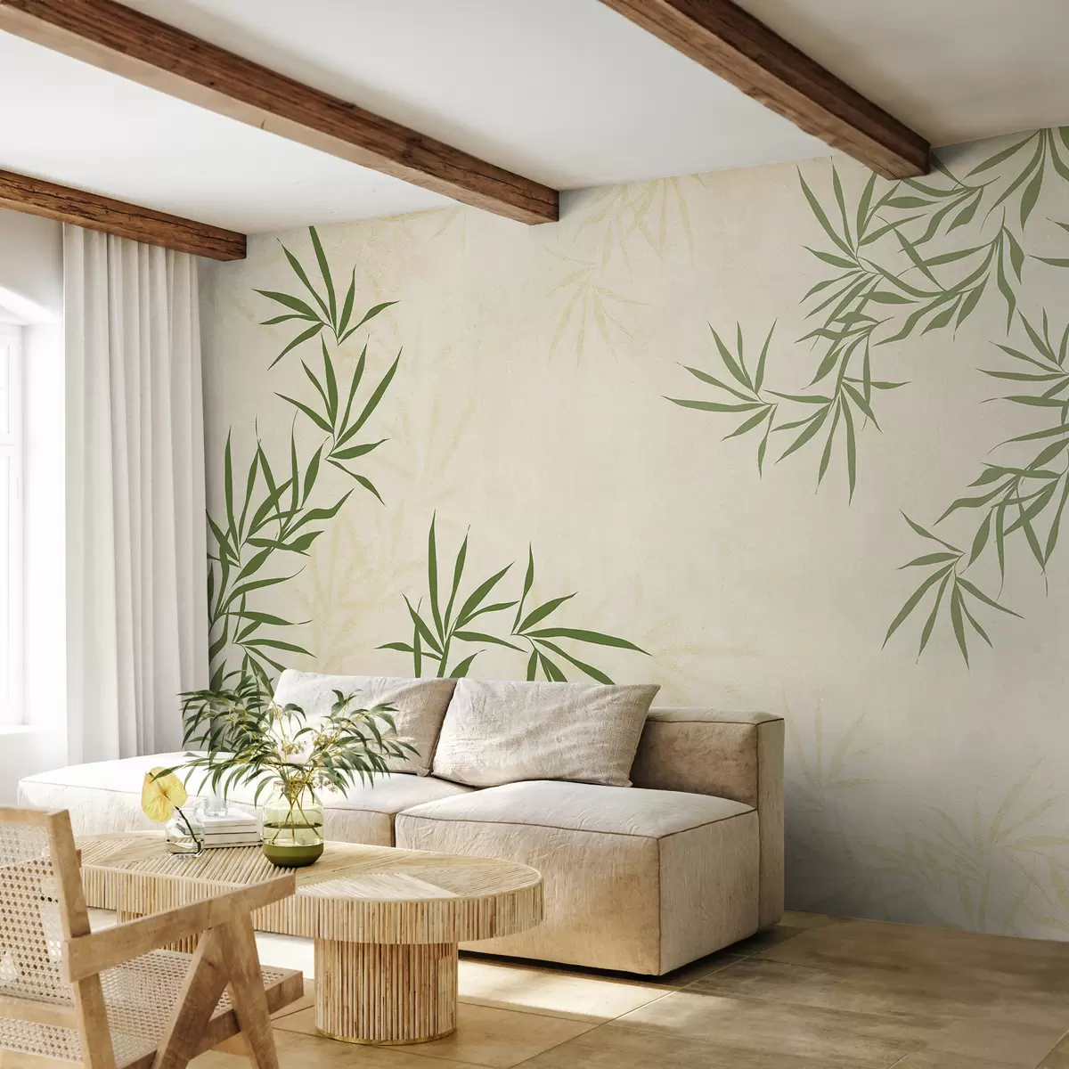 Fototapeter Plant kvister, bambus, vintage stil, tekstur bakgrunn, gul, grønn farge Nr. w00817