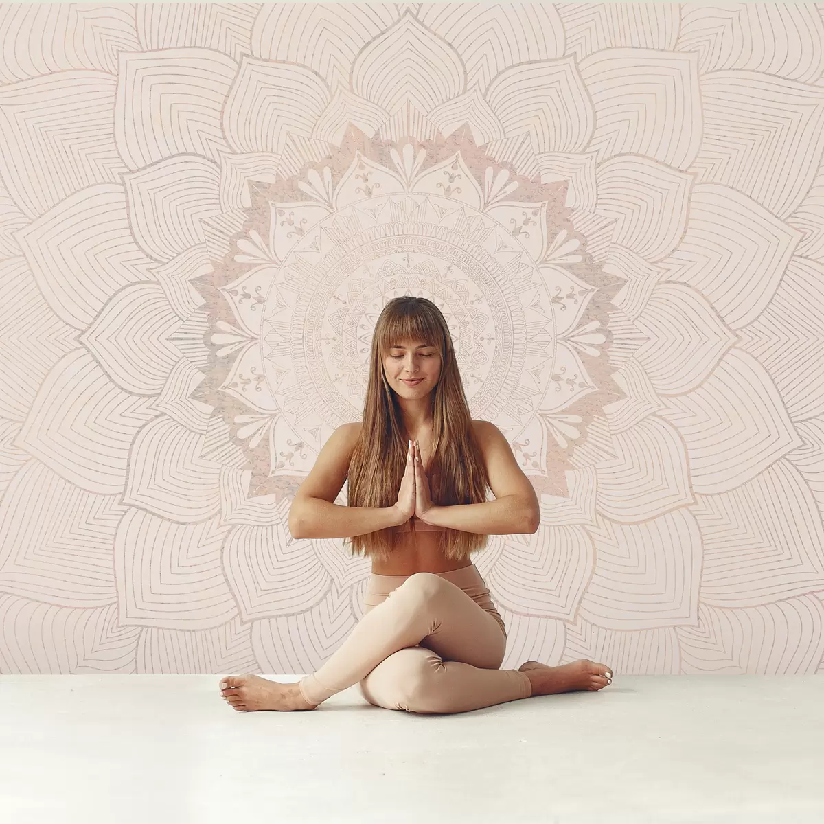 Fototapeter Rund mandala, tapet for yoga-rom eller for å harmonisere det personlige rommet. Veggmandala i varme pastellfarger på en strukturert, uregelmessig bakgrunn Nr. w01088