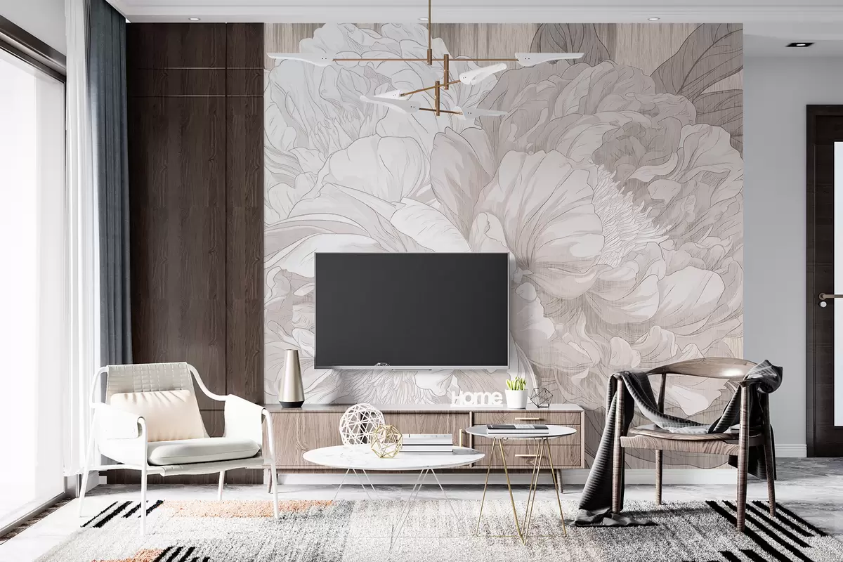 Fototapeter Strukturerte store pionblomster i beige nyanser Nr. w01141