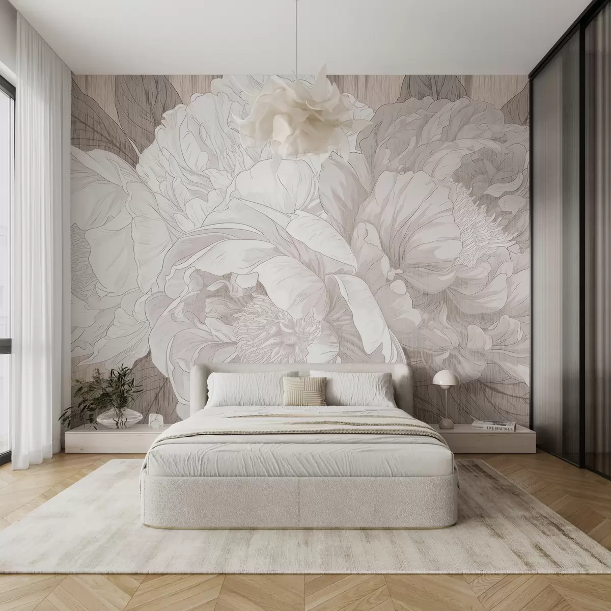 Fototapeter Strukturerte store pionblomster i beige nyanser Nr. w01141