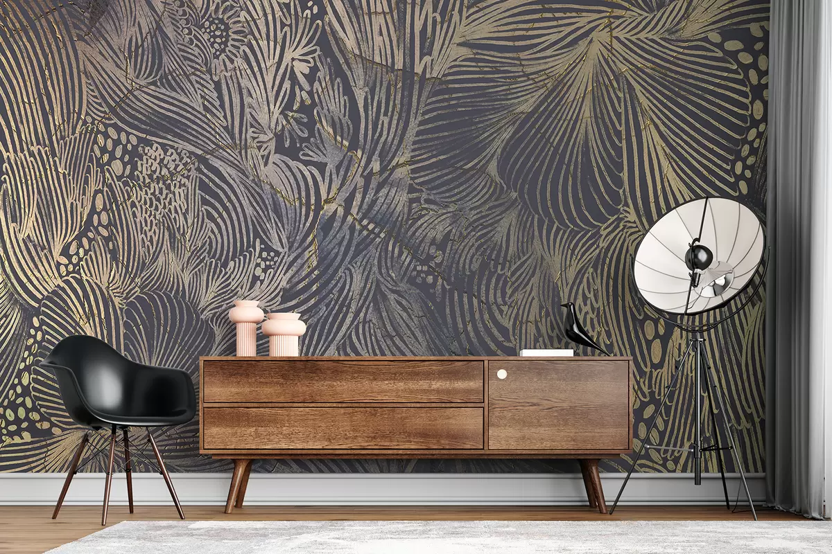 Fototapeter Abstrakt teksturert luksustrykk med overlappende organiske former og linjer Nr. w01243