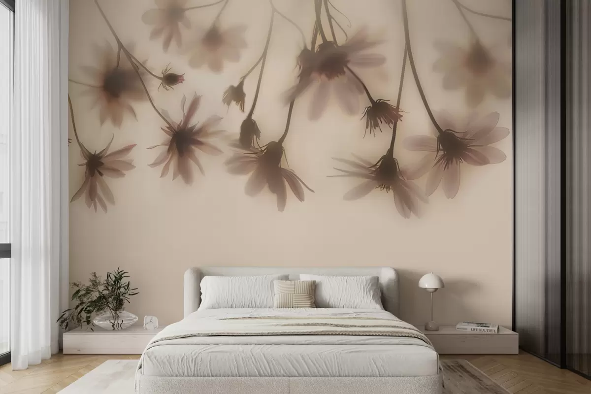 Fototapeter Delikate blomster i tåken henger ovenfra i rosa farger Nr. w01469