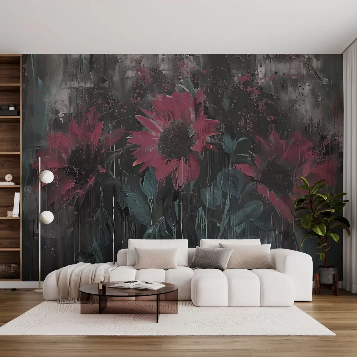 Fototapeter Abstrakt solsikkebilde, mørk grå bakgrunn og rød-rosa toner Nr. w01480v1