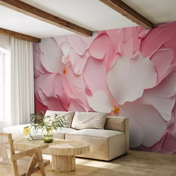 Fototapeter Hvite abstrakte blomster maler streker rosa farge Nr. w01555