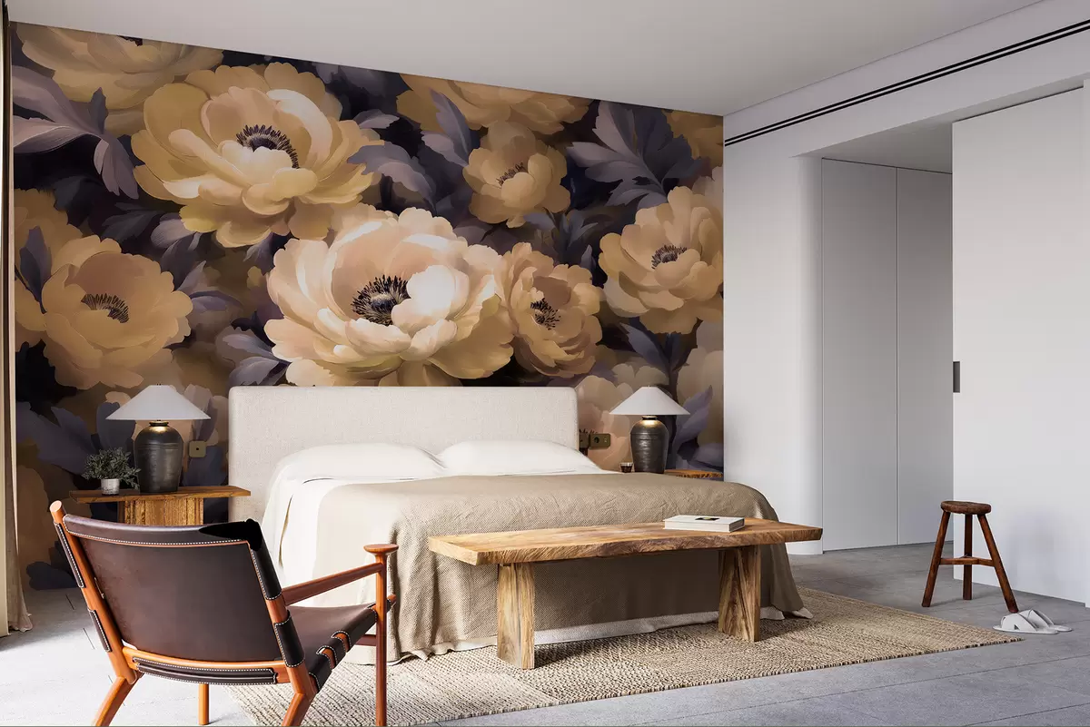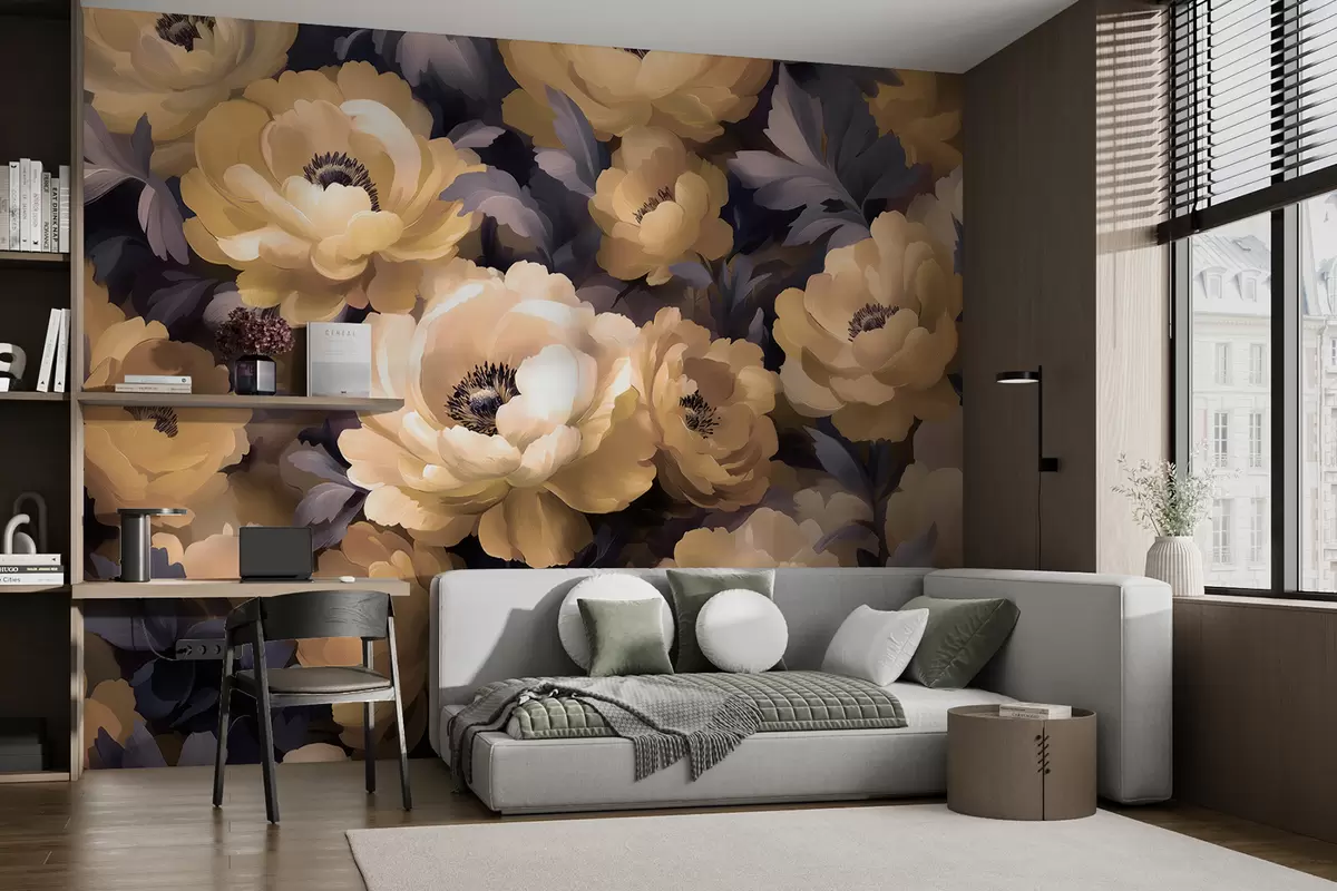 Fototapeter Blomster oljemaleri stil basert på beige og lilla farge Nr. w01581