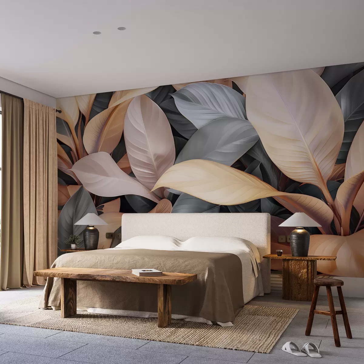 Fototapeter Store tropiske blader i blå og beige farger Nr. w01587v2