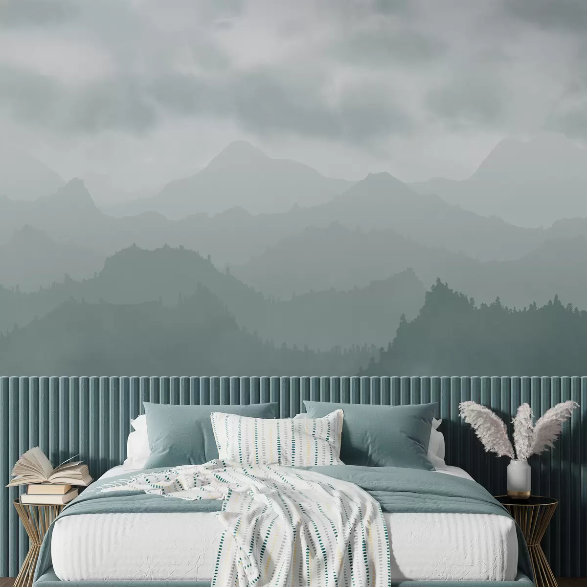 Fototapeter Tåkete fjell med cirrusblå skyer på himmelen Nr. w01637v2