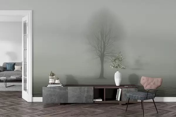 Fototapeter Tre i tåken i mørkegrønne farger Nr. w01660