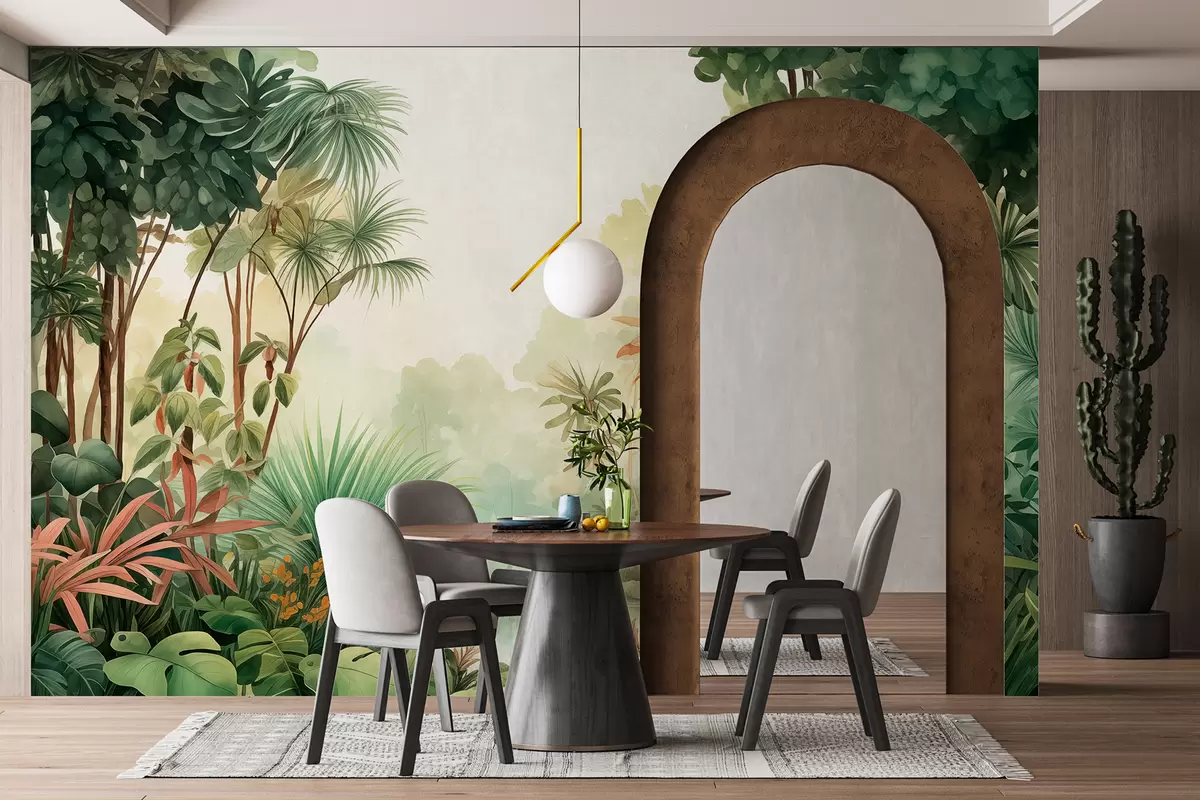 Fototapeter Akvarell jungelskog, palmer, innsjø, grøntområder Nr. w01784