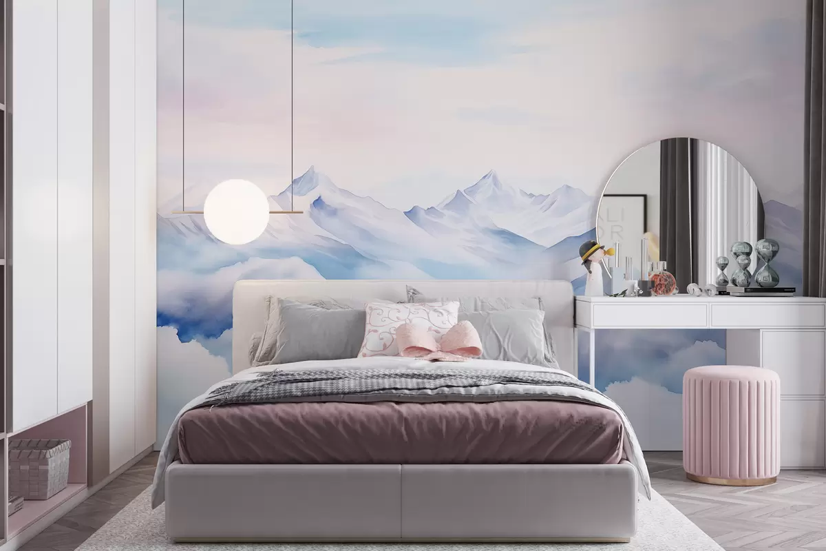 Fototapeter Fjellandskap, akvarell, myke lilla farger Nr. w01787