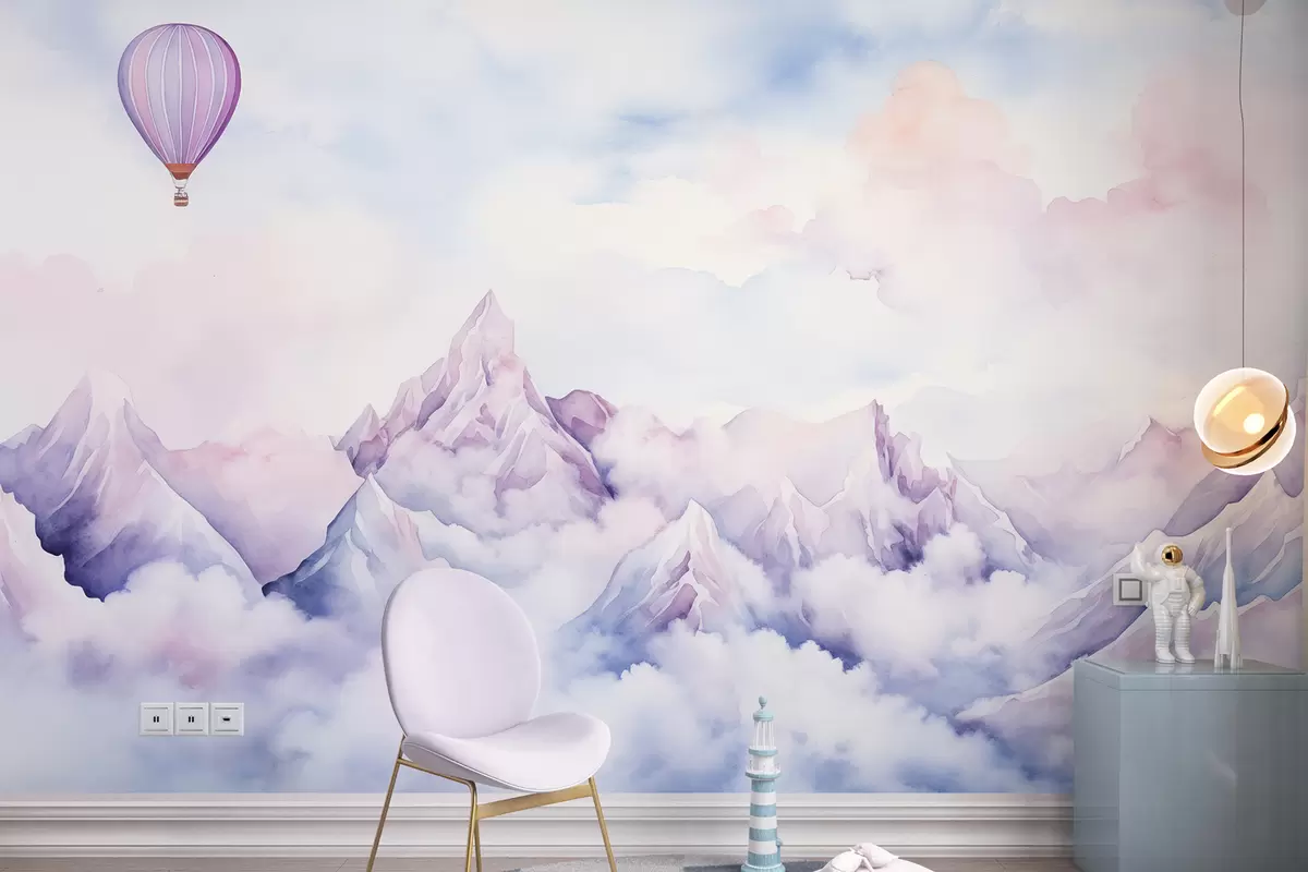 Fototapeter Luftballong i fjellet, akvarell, myke, eteriske farger Nr. w01789