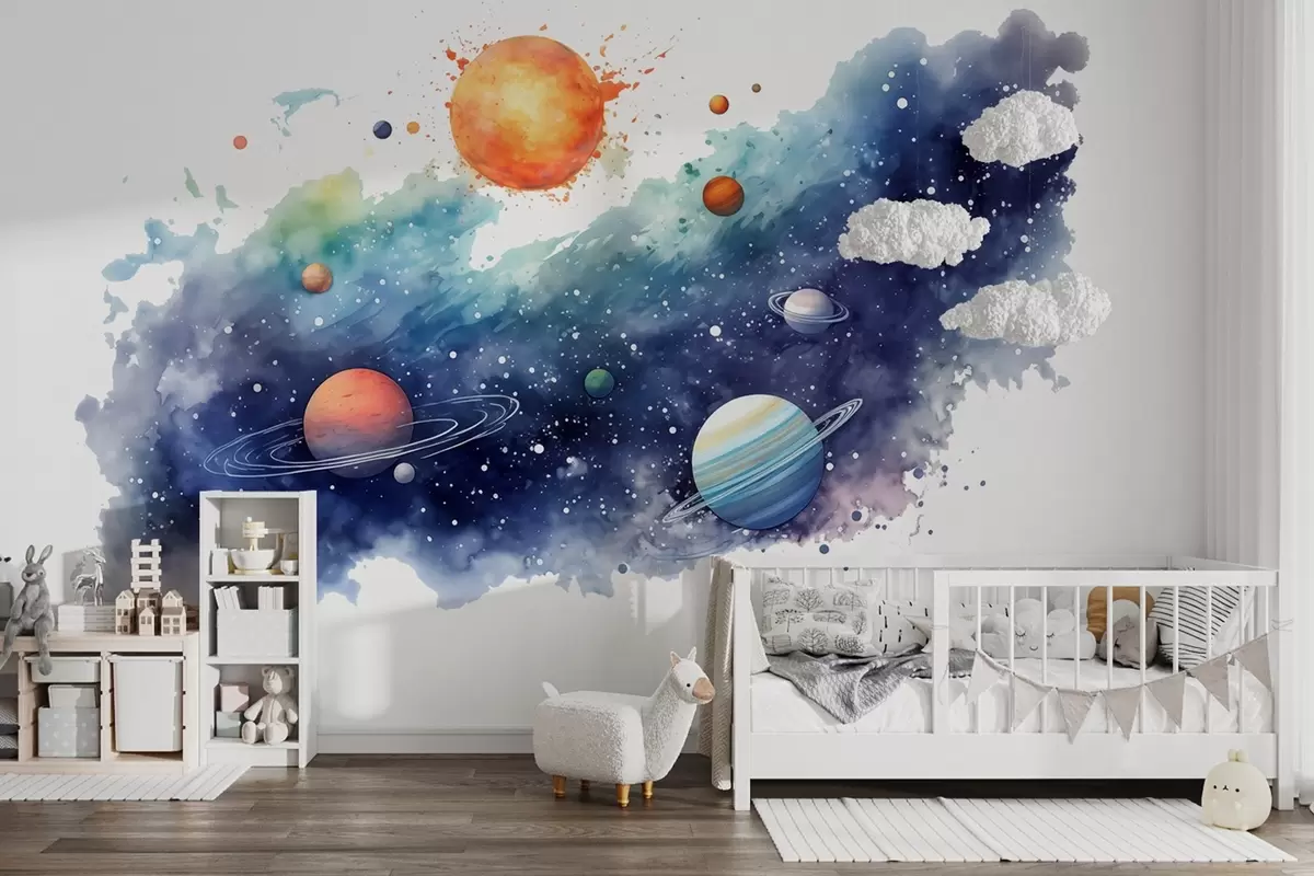 Fototapeter Akvarell av verdensrommet, planeter, sol, stjerner Nr. w01803
