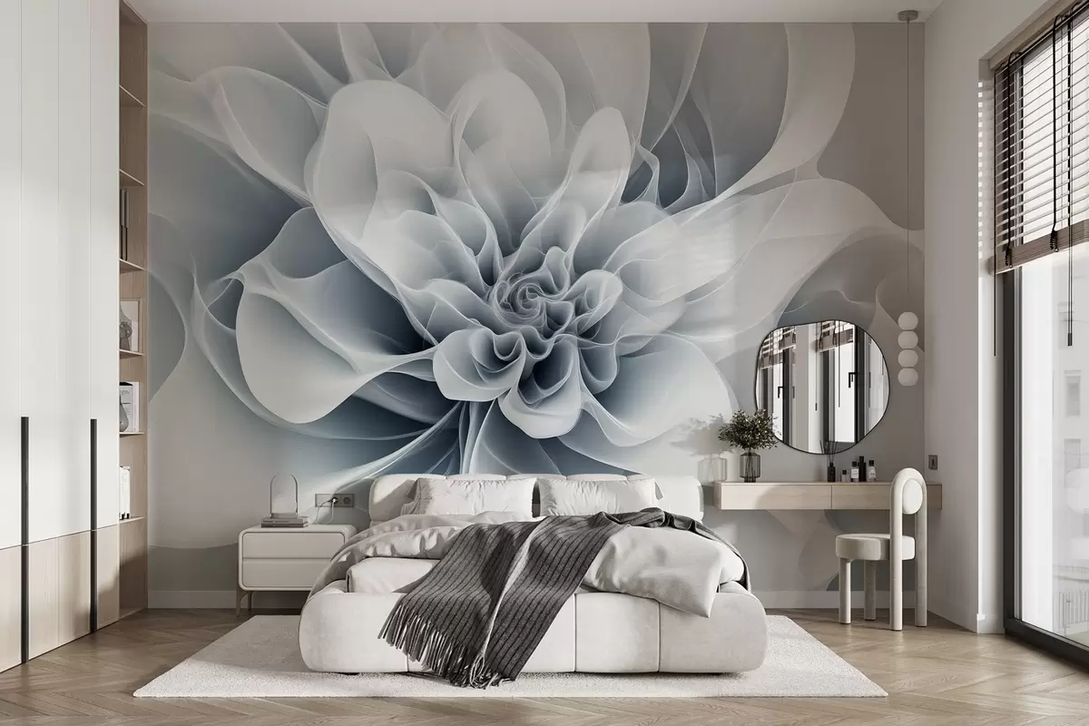 Fototapeter Elegant abstrakt bilde av en blomst med glatte linjer i blått Nr. w01853