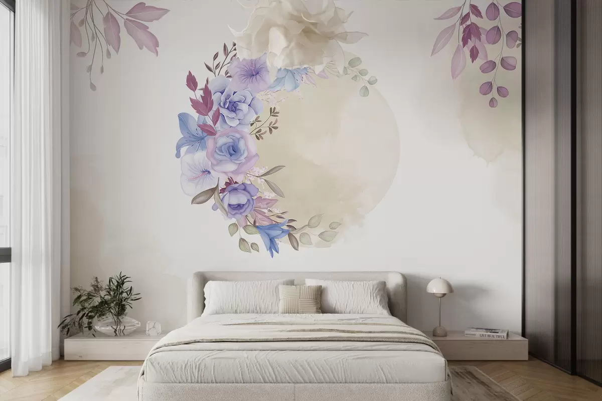 Fototapeter Delikate halvmåneformede blomster i akvarellstil med beige flekker Nr. w01874