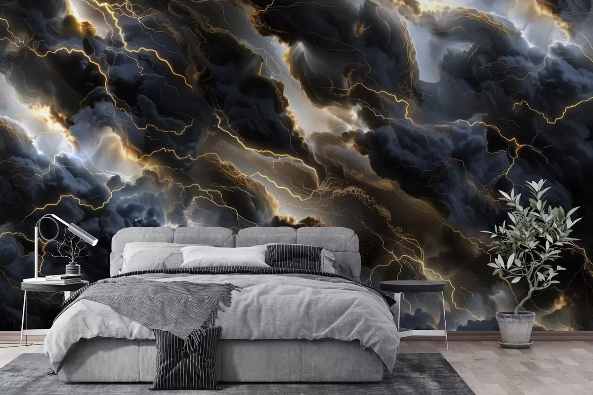 Fototapeter Svarte skyer med lyn som ser ut som marmor Nr. w01936