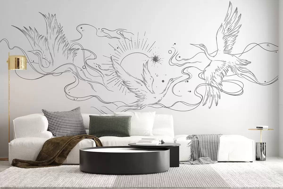 Fototapeter Flygende fugler, strektegning, minimalisme, grå fargepalett Nr. w02022v2