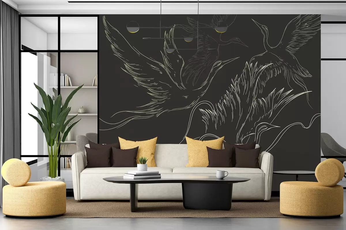 Fototapeter Fugler som flyr, minimalisme, strek, natur, mørk bakgrunn Nr. w02061v3