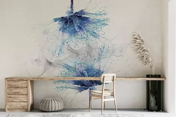 Fototapeter store blå blomster i nærbilde mot en bakgrunn av røyk Nr. w02137v2