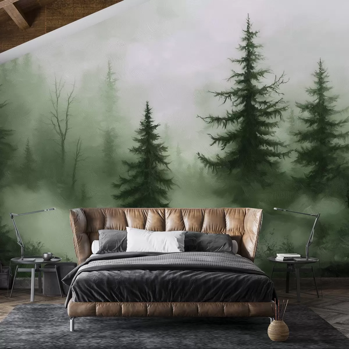 Fototapeter Mørkegrønn skog, oljemaleri, penselstrøk, natur Nr. w02153v1