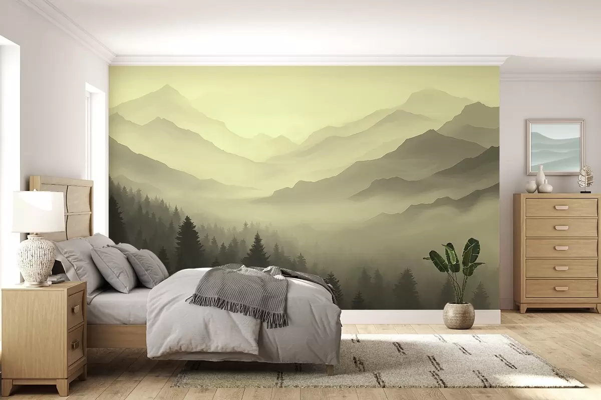 Fototapeter Skog og fjell i grønne nyanser Nr. w02186v1