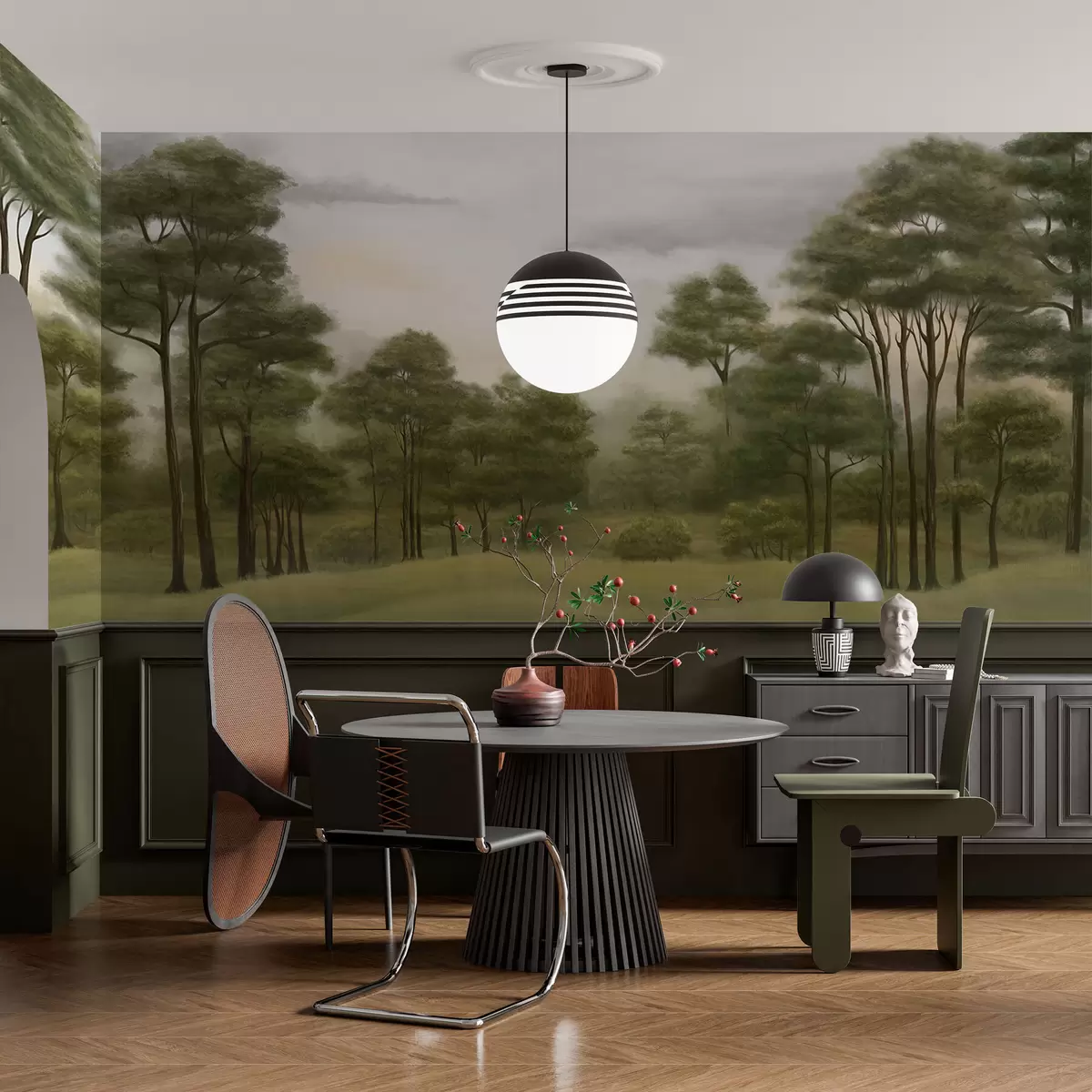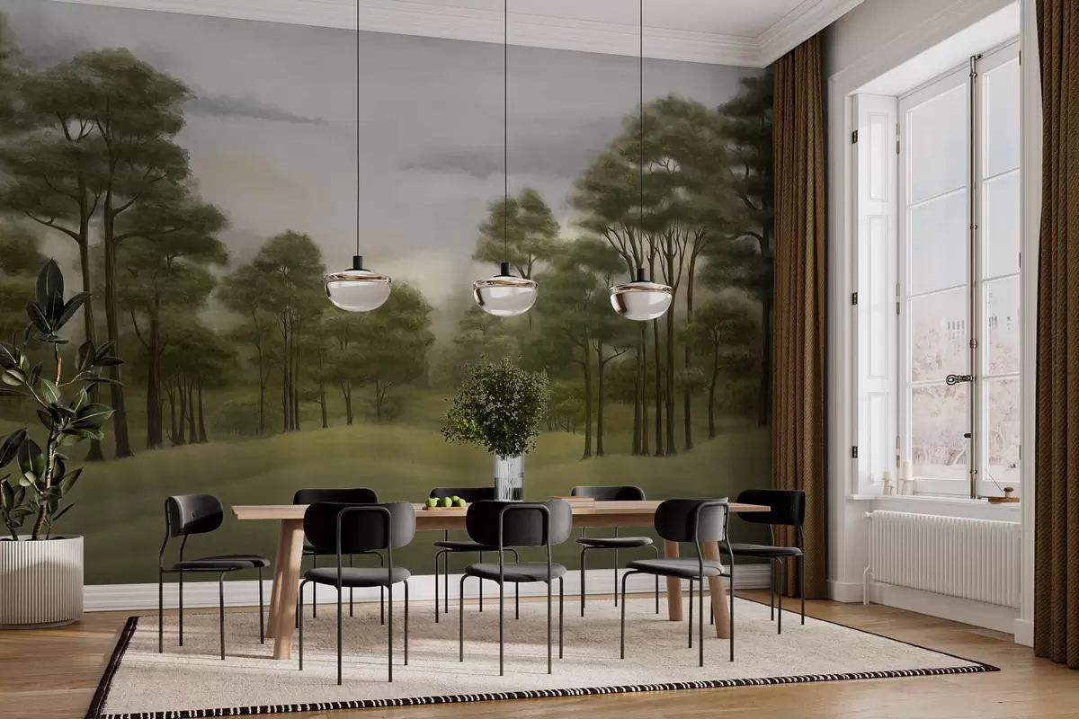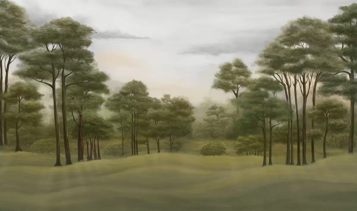 Fototapeter Fredfullt skoglandskap i milde farger Nr. w02193
