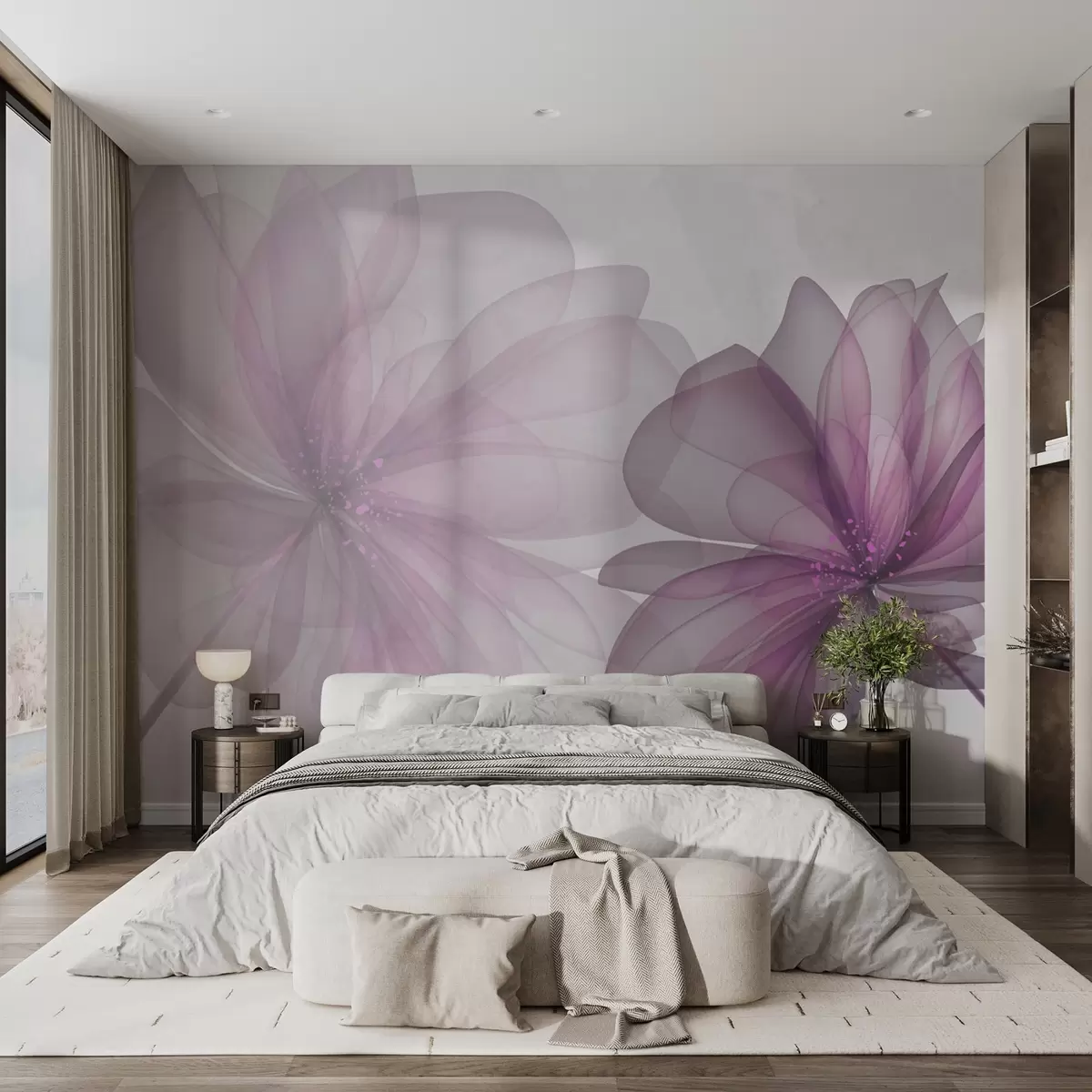 Fototapeter gjennomskinnelige store rosa blomster Nr. w02205